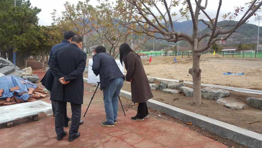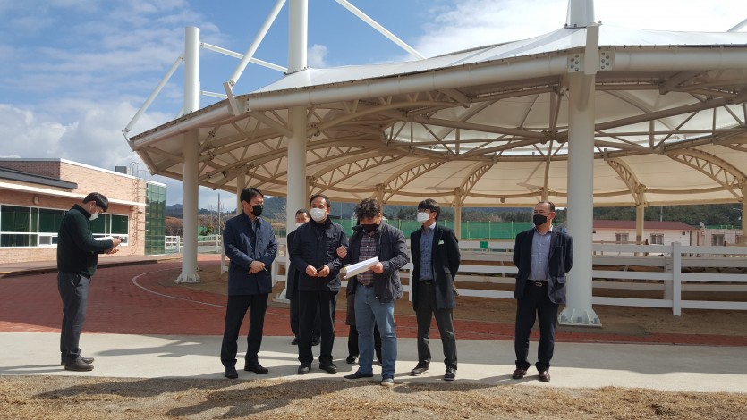 순으로 현장을 둘러보면서 부지 현황과 체육시설 점검까지 진행하면서
