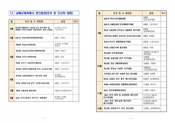 2021년 남해군체육행사 연간일정 페이지 정보 작성자 남해군체육회 댓글 0건 조회 1,064회 작성일 21-02-24 13:04 본문 남해군체육행사 연간일정 목록 이전글보물섬남해 제42회 대한축구협회장배 전국고등학교 축구대회 21.04.29 댓글목록 댓글목록 등록된 댓글이 없습니다.