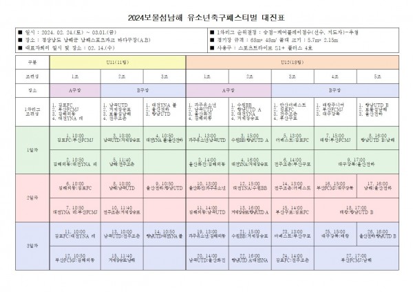 2024 보물섬남해 유소년축구페스티벌 대진표
