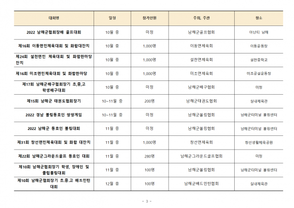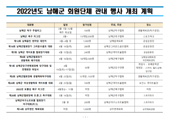2022년 남해군체육회 회원단체 연간 계획 페이지 정보 작성자 남해군체육회 댓글 0건 조회 972회 작성일 22-03-14 12:02 본문 2022년 남해군체육회 회원단체 연간 계획 목록 이전글2023년 남해군체육회 회원단체 관내 대회 개최 계획 23.03.03 다음글2021 남해군 종목단체대회 개최 일정(안) 21.11.15 댓글목록 댓글목록 등록된 댓글이 없습니다.