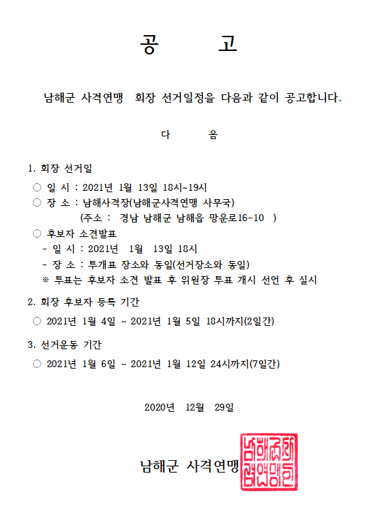 남해군사격연맹 회장선거 공고 페이지 정보 작성자 이선화 댓글 0건 조회 1,859회 작성일 20-12-29 11:54 본문 남해군사격연맹 회장선거 공고 목록 이전글남해군테니스협회 선거 공고문 20.12.30 다음글남해군유도회 후보자 등록 공고 20.12.29 댓글목록 댓글목록 등록된 댓글이 없습니다.