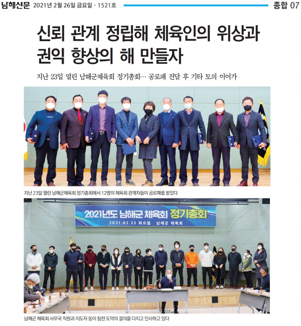 신뢰관계적립해 체육인의 위상과 권익 향상의 해 만들자_남해신문