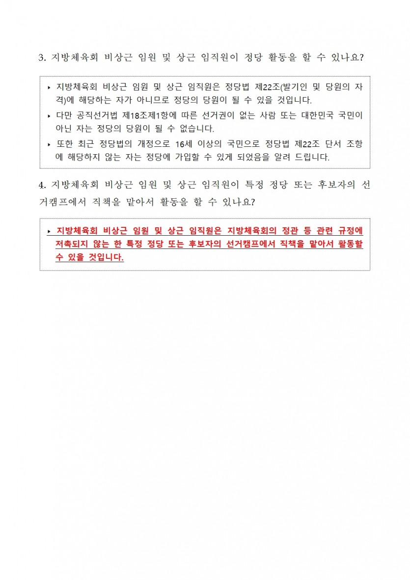남해군체육회의 공직선거관련(지방선거) 안내 페이지 정보 작성자 남해군체육회 댓글 0건 조회 1,841회 작성일 22-05-24 14:59 본문 남해군체육회와 공직선거관련 사항을 안내 드립니다. 목록 이전글「부정청탁 및 금품등 수수의 금지에 관한 법률」개정사항 알림 22.06.17 다음글2022 남해군 어르신생활체조 및 체력관리교실 운영 22.05.06 댓글목록 댓글목록 등록된 댓글이 없습니다.