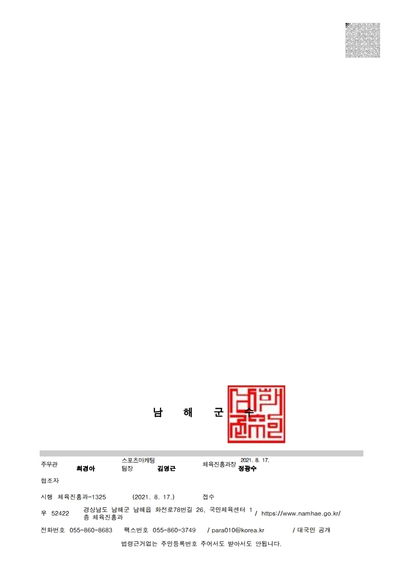 작성자 남해군체육회 댓글 0건 조회 1,783회 작성일 21-08-18 10:26본문
