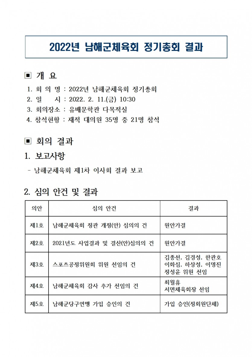 2022년도 남해군체육회 정기총회 결과 페이지 정보 작성자 남해군체육회 댓글 0건 조회 1,761회 작성일 22-02-11 17:23 본문 2022년도 남해군체육회 정기총회 결과를 알려드립니다. 목록 이전글2022년 남해군체육회 생활체육지도자(1차)모집 공고 22.02.23 다음글2022년 남해군체육회 제1차 이사회 결과 22.02.10 댓글목록 댓글목록 등록된 댓글이 없습니다.