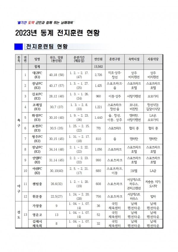 2023년 동계훈련 현황 페이지 정보 작성자 남해군체육회 댓글 0건 조회 587회 작성일 24-11-05 09:51 본문 2023년 동계훈련 현황 목록 이전글2024 동계훈련 현황 24.11.05 다음글2022 동계전지훈련 현황 22.01.06 댓글목록 댓글목록 등록된 댓글이 없습니다.